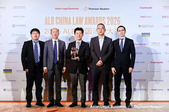4 月 16 日,国际权威法律媒体《亚洲法律杂志》(ALB)公布 “2026 ALB 中国法律大奖” 获奖榜单,中国贸促会专利商标事务所凭借深厚专业底蕴与优异服务实绩,摘得年度中国知识产权事务所大奖。贸促会专商所副所长原绍辉率团出席盛典并领奖。