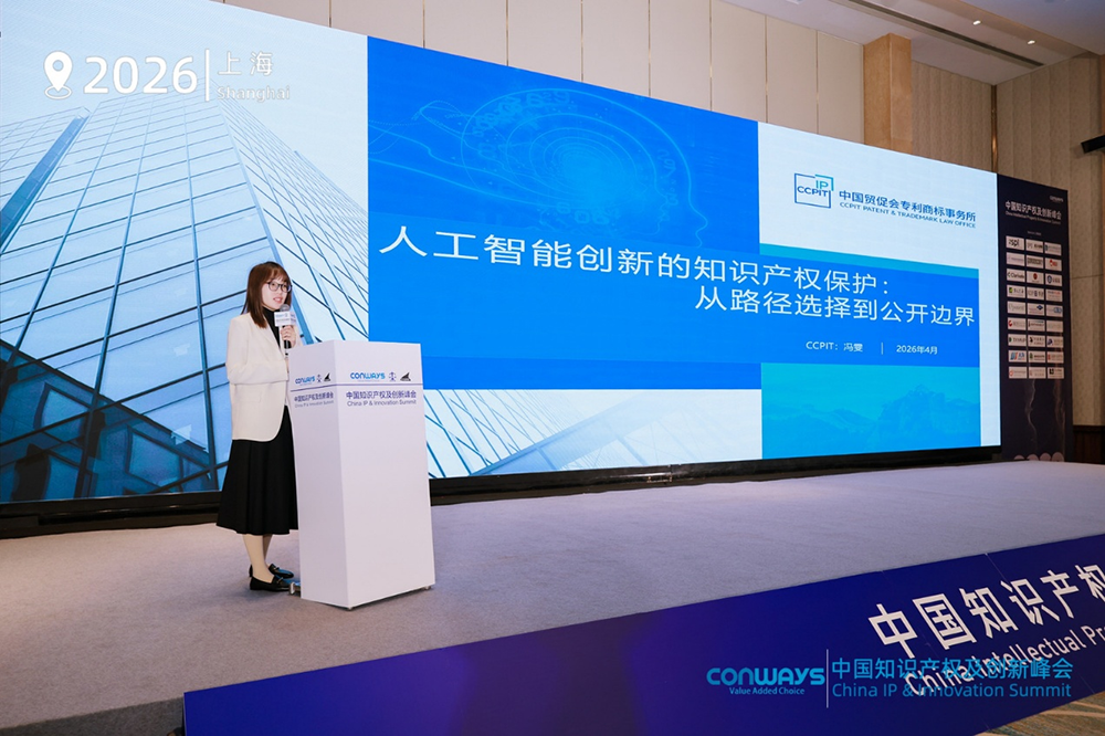 贸促会专商所派出7人团组参会,武汉分公司副总经理邹丹担任峰会首日主持人,上海分公司总经理助理冯雯发表题为“人工智能创新的知识产权保护:从路径选择到公开边界”的主题演讲。冯雯介绍了在人工智能创新的知识产权保护策略中应当如何在商业秘密与专利保护之间进行选择,以及在申请人工智能专利时应当如何把握技术方案的公开边界,为企业知识产权从业人员面临人工智能创新保护时的实践提供了系统、全面、实操性强的参考。